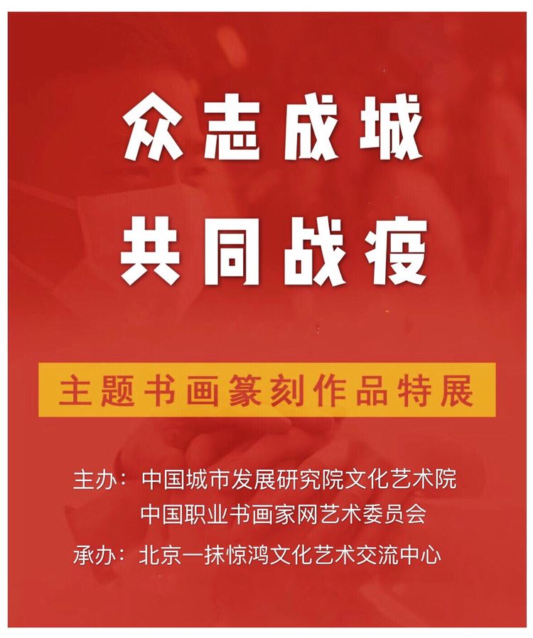 【编者按】近日,新型冠状病毒肺炎疫情牵动着亿万国人的心。疫情当前,共克时艰。为了用书画作品凝聚起人民群众抗击疫情的强大精神力量,中国城市发展研究院文化艺术院发出号召,要求广大会员拿起手中的笔,大力宣传防护知识,讴歌战斗在抗疫救援前沿的英雄儿女,同全国人民一起,在党中央的坚强领导下,心手相牵、众志成城,战胜瘟疫、重建家园,争做有情怀、有担当、有奉献的文化艺术工作者。广大会员积极响应、立即行动,在较短的时间内创作出主题突出、立意鲜明的优秀作品(共精选56幅),充分发挥了文化艺术在疫情防控阻击战中的鼓舞激励作用。